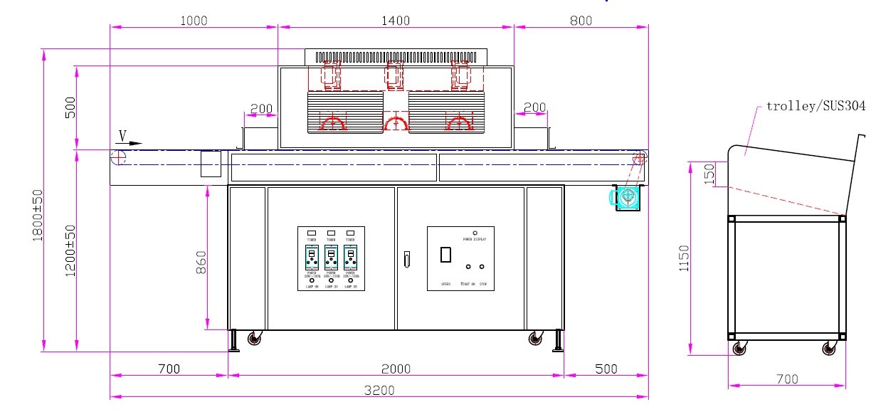 1. UV燈規格:8.0千瓦×3支(鹵素燈)