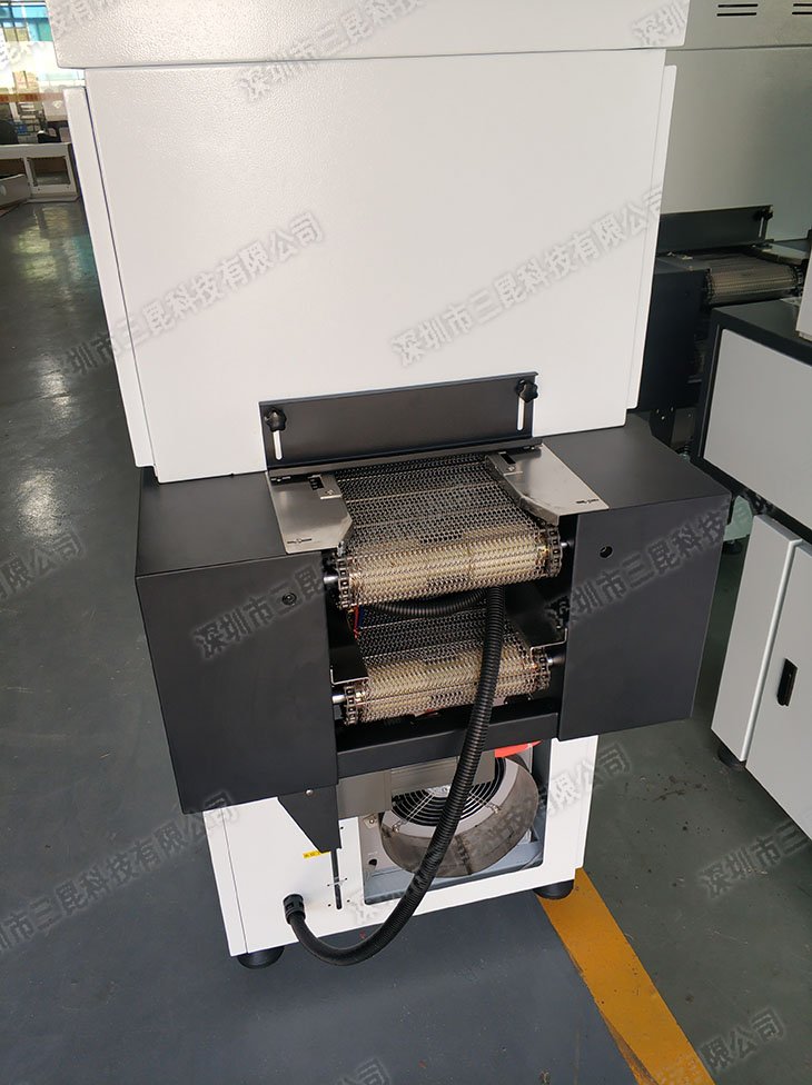 本產品采用韓國LG雙通道UVLED光源(主波峰365nm),配備水冷散熱系統與觸摸屏控制,確保高效穩定固化。搭載不銹鋼穿軸網帶,支持上下層雙向輸送(寬度172mm可調,速